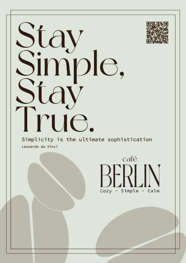 Entwicklung einer ganzheitlichen Corporate Identity für das Café Café Berlin, einschließlich Konzeption und Gestaltung des visuellen Erscheinungsbildes. Ziel ist es, eine klare, wiedererkennbare Markenidentität zu schaffen, die den urbanen Charakter des Cafés widerspiegelt und konsistent über alle Kommunikations- und Anwendungsbereiche hinweg eingesetzt werden kann.